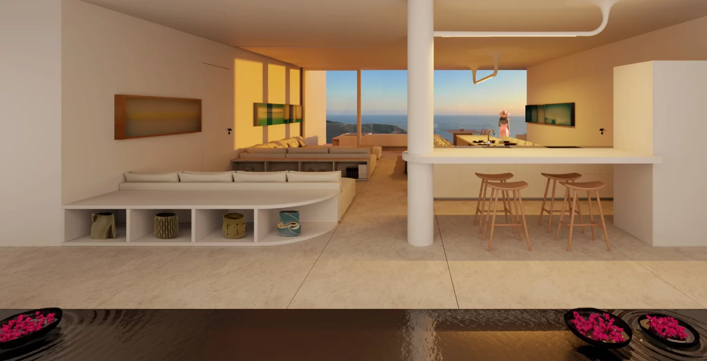 Cada línea, sombra y reflejo están diseñados para dialogar con la luz cambiante del día, creando una sensación de serenidad visual y equilibrio absoluto.