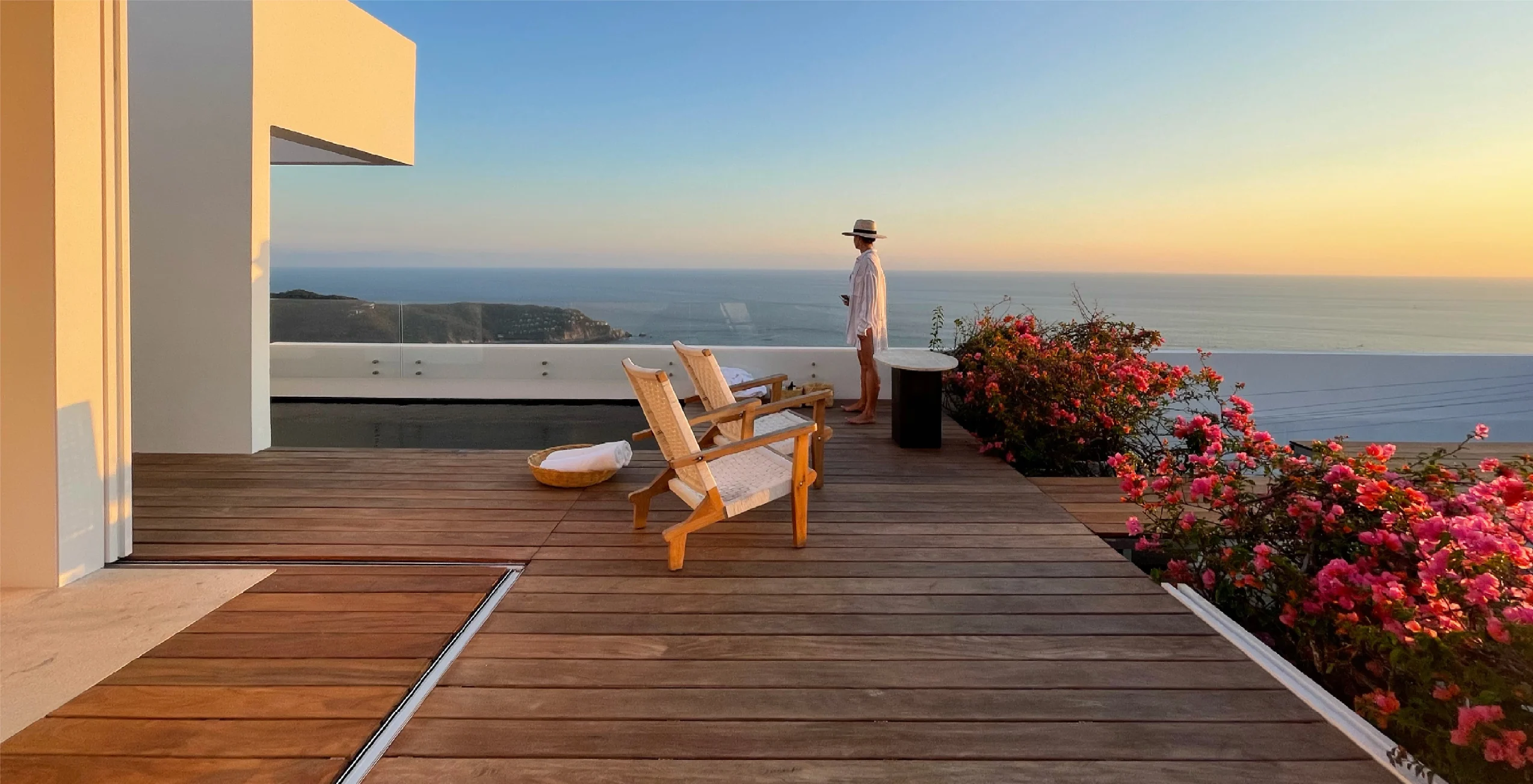 Las habitaciones buscan generar una sensación emocional de bienestar y por ello exponen los cielos y mar en primer plano: ciertamente sería difícil encontrar algo tan elemental o liberador como estos divinos cielos azules y atardeceres coloridos.