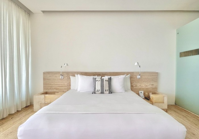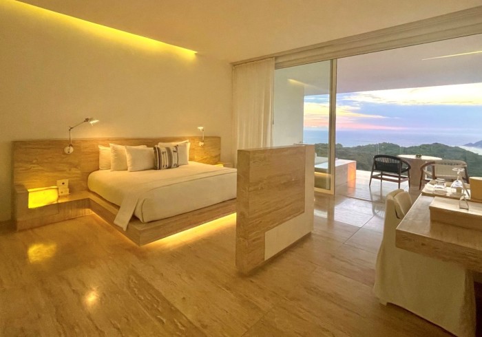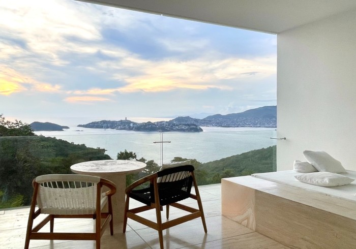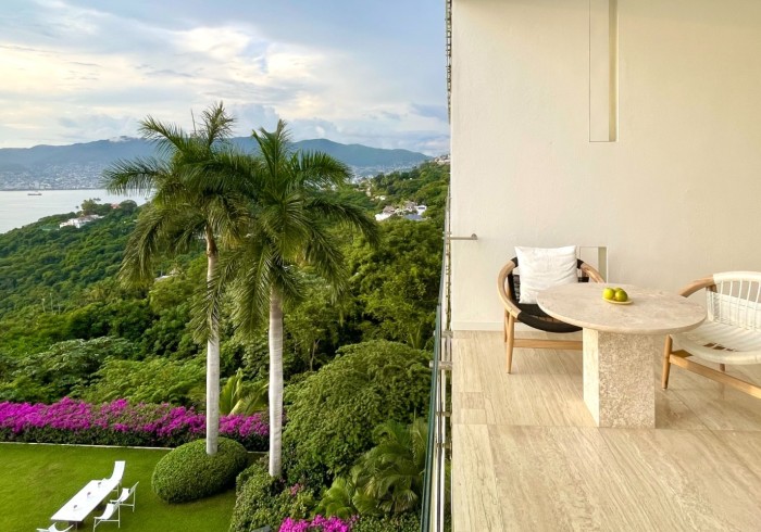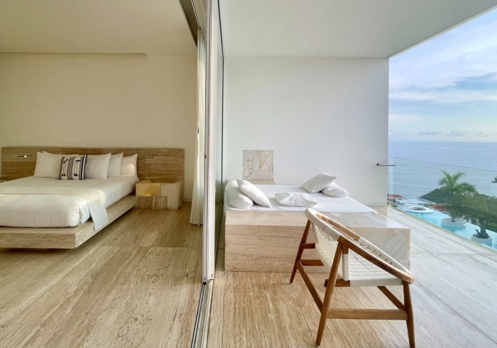 Ubicada en el edificio principal, la Ocean Balcony Suite ofrece 62 m2 de amplitud con vistas al océano Pacífico y a la Bahía de Acapulco. Cuenta con una cama King size, escritorio de lectura y un balcón que se integra armoniosamente al interior, creando un ambiente de serenidad y privacidad. Su cama de día en el exterior invita a la contemplación del paisaje y a disfrutar los instantes más luminosos del día en total calma.