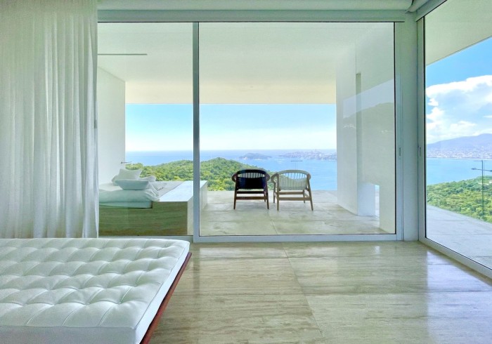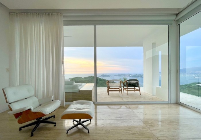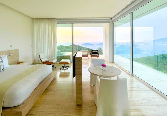 Ubicadas en las esquinas del edificio principal, nuestra Ocean Designer Suite cuenta con 93 m2 de espacio habitable, con ventanas corredizas de piso a techo que brindan la sensación de estar suspendida entre el mar y el cielo. Una suite que resguarda piezas que son un ícono del diseño industrial como de Le Corbusier o el sillón de Mies van der Rohe; cuenta con un desayunador al interior y cama de día en el balcón para disfrutar de la privilegiada vista al Océano Pacífico y de los maravillosos atardeceres de Acapulco.
