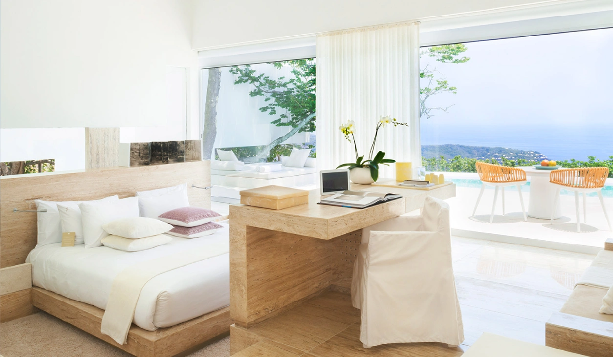 Un santuario de serenidad con 158 m22 de elegancia y privacidad. Su piscina abraza la villa, creando un entorno de armonía entre el agua, la luz y el paisaje. Con una terraza amplia y doble cama es un refugio privado que invita a relajarse bajo la brisa del Pacífico.